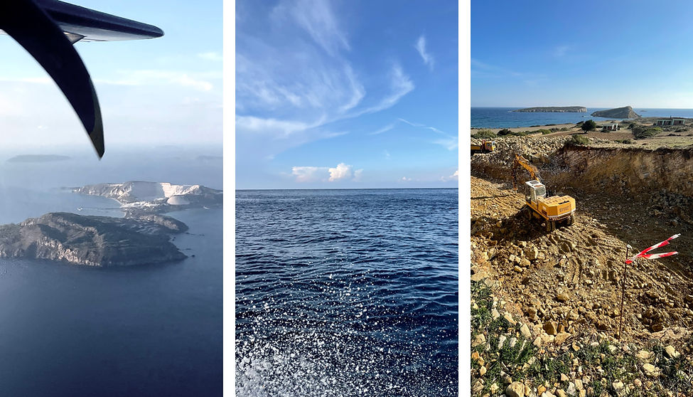 Set against the rich cultural context of a small Greek island, the design proposes a balanced integration of architecture and nature. The house concept derives from the combination of programmatic requirements, local rituals, geometrical and cultural characteristics of the island. The proposal creates ample outdoor spaces, with optimal orientation and selected views, taking advantage of good weather in the summer, provoking daily routine and internal functions to be placed outdoors. Daytime living enclosed spaces are placed underground, covered with soil restored to the original level. Bedrooms and guest units are scattered on the landscape, shaped like naturally corroded monolithic volumes, opening up to unobstructed views, while private spaces look into gardens within. The design embraces the landscape with a free-form intervention bringing the composition together, implementing contemporary demands and architectural expression in a harmonious synthesis.
